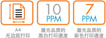 激光品质的打印速度可达 10 页/分钟(黑白)、7 页/分钟