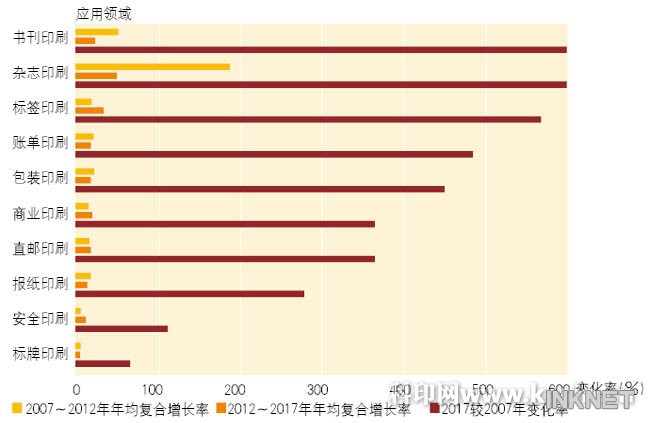 图1 2007~2017年喷墨印刷在不同领域的应用情况