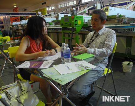 记者在展会现场走访了包括绍兴县恒元机械制造有限公司、苏州艾斯泰纺织品有限公司、艺康集团、绵阳禾本生物工程有限公司、台湾福源兴业股份有限公司在内的诸多展商。大家对明年5月份在广州召开的第十届纺织品印花工业技术展览会暨纺织品面辅料展览会都抱有极大的兴趣,纷纷询问展会的详细情况,小编对大家的提问一一作了详细的回答。