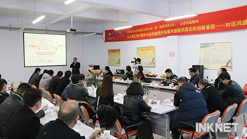 本次群象岛百家名企探营鸿盛数码之旅的最后环节为对话鸿盛数码董事长秦国胜先生。秦总围绕喷墨行业的发展,分享自己奋斗多年的思想感悟,和在场的嘉宾进行了一场关于“科技创新”的思想的碰撞。
