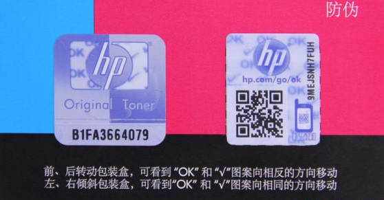 惠普针对几种可能,都有了自己的防伪策略。前面说的透明胶带热风枪的办法,新的胶带在粘合剂里面添加了染料,一旦受热超出范围,就会彻底的变色,这杜绝了用热风枪吹开胶带、无损打开正品包装的可能。并且在胶带中加入纤维丝,打开之后,纤维丝会必然会断裂,这样再无续接的可能。