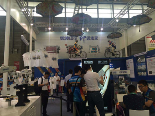 在爱普生的展会体验区,我们看到SureColorF2080可以直接在服装上进行个性化打印,一件起印,无需制版,色彩表现力丰富,制作流程简单。现场观众参与的热情高涨,对爱普生打印机的高精度输出质量与快捷赞不绝口。通过展示,可以看到,爱普生F系列墨仓式数码印花机与“爱普生微喷印花™”工艺的完美结合,改变了传统印花制版复杂、色彩一致性控制较差、色彩过渡生硬的问题,并顺应了目前市场短版印刷的需求,广泛应用于服装、布料、各种布艺印花和广告条幅制作等领域,爱普生的这些解决方案为纺织行业发展带来新的机遇。