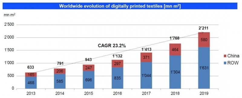 近年来,数码印花加工的低污染、低能耗、高附加值、柔性化生产的特点,可实现小批量、多品种、短交期、快时尚,顺应绿色、环保、可持续化发展的趋势,符合未来产业发展方向,正逐渐取代传统圆网、平网印花、手工丝印。