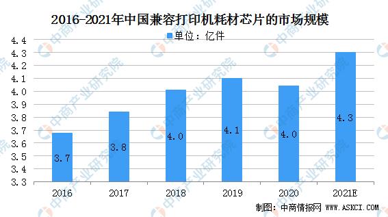 随着印刷行业的发展,兼容打印机耗材已越来越普遍。尽管成本较低,但随着技术的不断发展,兼容打印机耗材的功能通常可以媲美原品牌打印机耗材的功能。2016年中国兼容打印机耗材芯片销售量达3.7亿件,2020年出现疫情及企业并购重组行为,销量略有下滑,预计2021年销售量上升至4.3亿件。