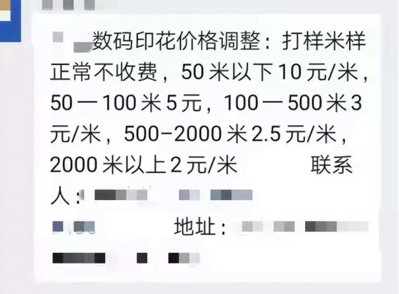 通常,最便宜的是水印。印刷价格一般在2.7元/米左右,较好的已经超过3元/米了。另外,印刷费300-500元,水印的价格和印染费一样每年都在上涨。然而,数码印刷则完全不同,从刚出现时的70-80元/米,迅速降到20元/米、10元/米,到现在的3-5元/米,甚至现在很多工厂都打到了2元/米的超低价格。