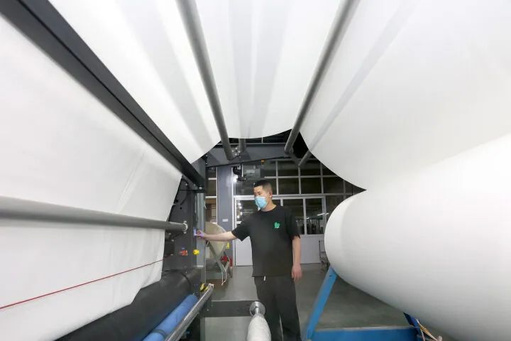 2022年4月25日,南通新建数码印花有限公司的工作人员正在印花车间、后整理车间和成品车间忙碌。该企业是全国宽幅数码印花行业领跑者,天丝类、纯棉类、天丝纯棉混纺类和涤棉类产品年产销量1400万米,位居国内第一,产品销往国内各地及澳大利亚、美国等欧美国家,年销售额两亿多元。
