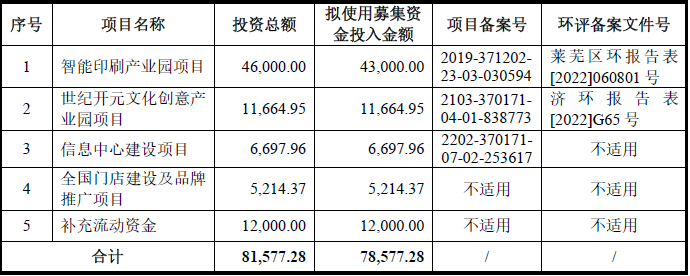 招股书显示,世纪开元计划募集资金8亿元左右,主要用于智能印刷产业园、世纪开元文化创意产业园、信息中心建设、全国门店建设及品牌推广等项目以及补充流动资金。