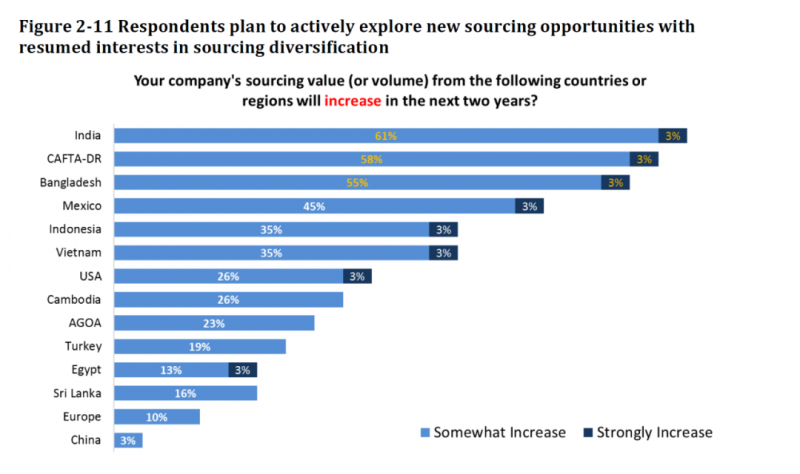 (一)采购多元化趋势将延续,印度、孟加拉国和中美洲国家或将获得更多订单。