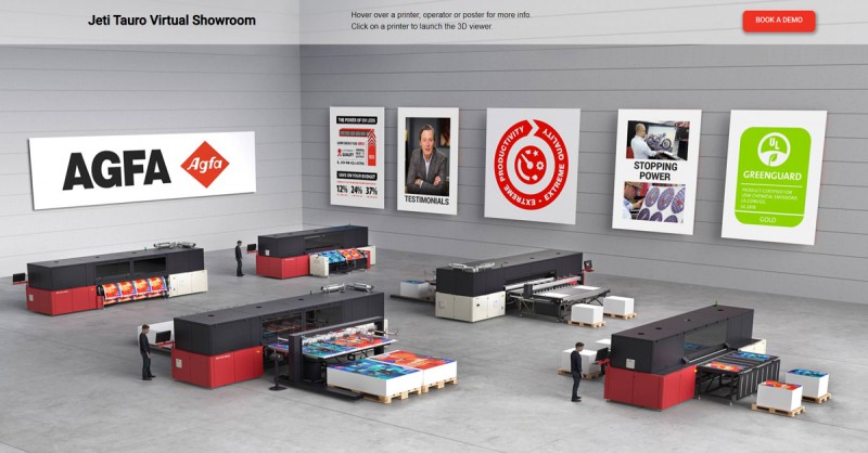 在主题为“战略性增长,可持续成功”的Fespa展台上,喷墨印刷解决方案提供商爱克发展示了其最新的喷墨印刷创新与技术。带有机器人自动化技术的onset X3 HS和Jeti Tauro H3300 UHS LED是拳头产品,但此外爱克发也带来了其染料Avinci印刷机和多功能的中档Oberon卷筒式印刷机。