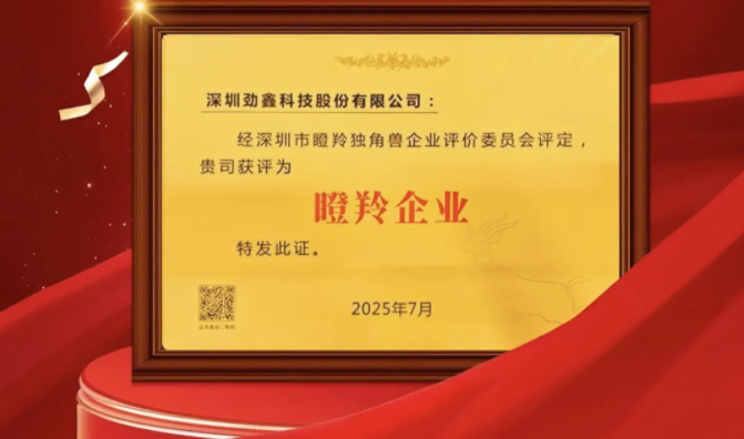 凭借突出的创新能力、高速的成长曲线及巨大的发展潜力,劲鑫科技在2025年入选深圳市“瞪羚企业”名单。此前,公司还连续入选国家级专精特新“小巨人”企业、国家级重点“小巨人”名单,综合实力与发展潜力获得官方及行业的高度认可。