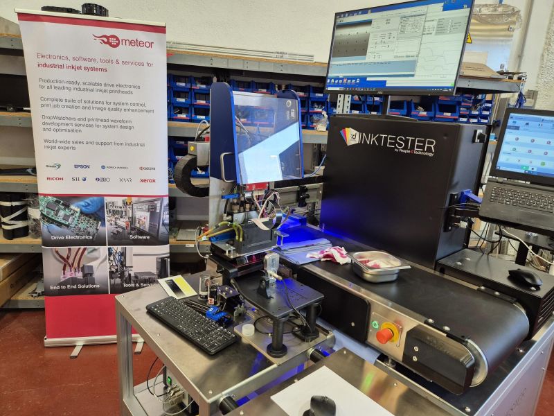 该光学系统还可以分析从微秒到数小时的空闲时间后喷出的首批墨滴。通过检测部分干燥或喷嘴填充不完全等问题,可以应用校正预脉冲,从而潜在地减少维护和清洁需求。据 Meteor 称,此功能有助于减少基板浪费并提高整体工艺的可持续性。
