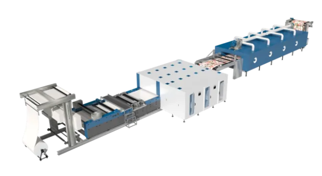 Vega one高速智能数码喷墨印花机是宏华在数码印花领域具有划时代意义的智能创新。是依托于宏华尖端的Single Pass技术,推出了一款专为工业级自动化生产量身定制的数码印花解决方案,它集成了大规模生产能力、卓越的产品质量、操作的灵活性、系统的可靠性、卓越的性价比以及多样化的印花工艺等全方位优势。该生产线的最高运行速度可达6000米每小时,搭载最新一代京瓷的循环喷头,24小时稳定生产日产能达8-10万平方米,分辨率高达1200DPI,支持4至12色印花模式,高浓墨水与强大的色彩管理系统,确保打印颜色深度与饱和度的准确、一致及稳定。喷头采用非接触式喷头清洗负压抽吸技术,能快速清洗确保打印效果更能延长喷头的使用寿命。此外还支持实现在线上浆,不仅全面提升了生产效率和产品质量,还为实现环保绿色可持续的印花生产提供了强有力的支持。
