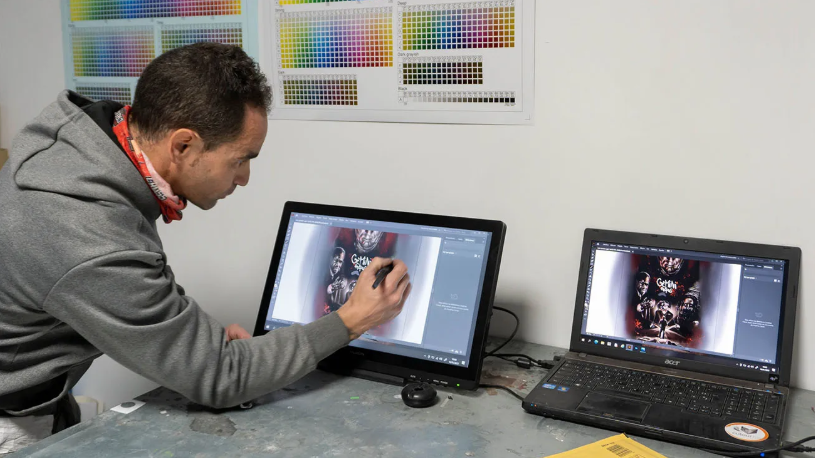Sergio用平板电脑进行设计并将作品数字化,使用BN-20进行打印,从而实现更加灵活的打印和修改。