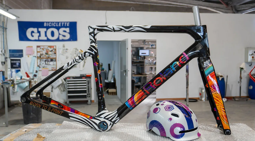 SColors为Roland DG设计了两辆特别的定制自行车。我们有机会看到最近完成的第二辆自行车和配套的头盔,它们将在欧洲各地的Roland DG展厅展示。