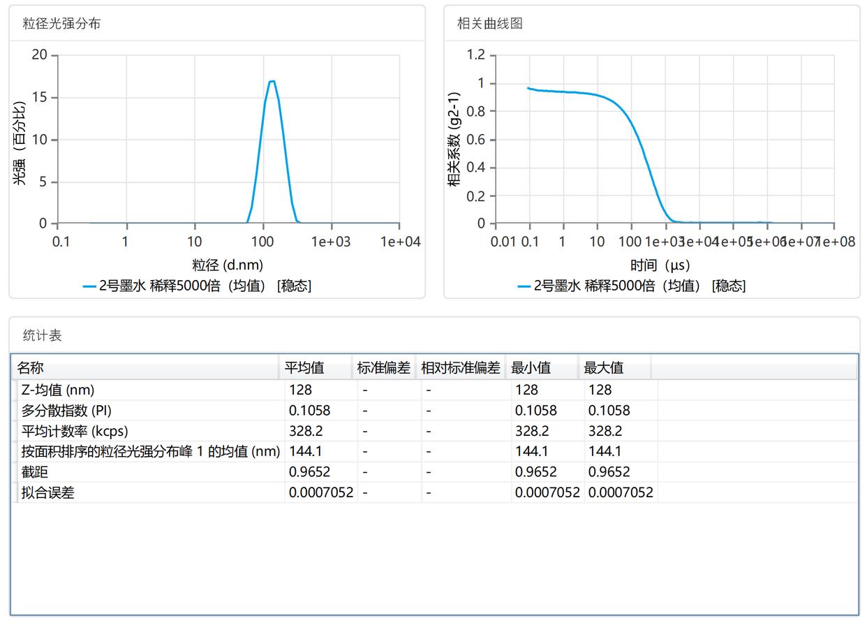 某水性墨水使用NS-90ZPlus纳米粒度电位分析仪的粒度检测报告