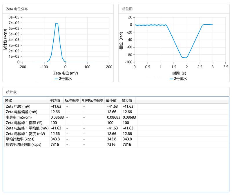 同款水性墨水样品使用NS-90ZPlus纳米粒度电位分析仪的Zeta电位检测报告