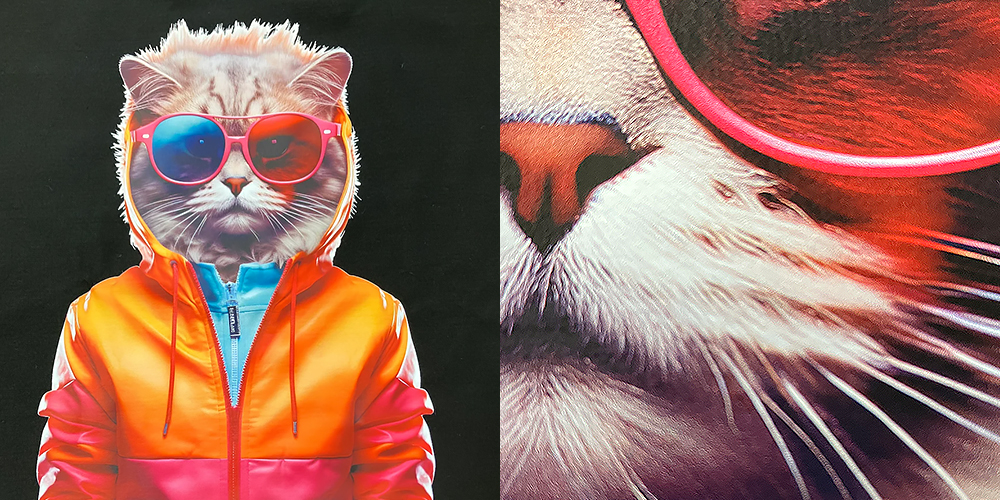 DTF(热转印膜打印)是一种近年来被广泛用于T恤、手提袋等印花的印刷方法。与热升华转印不同,DTF从胶片到织物等材料的印刷过程中无需裁剪,大大缩短了印刷流程。