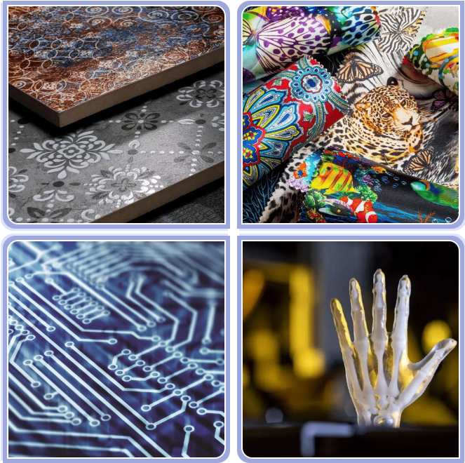 我们日常见到的数码喷墨,大多数用于广告、包装、书籍出版等领域。但实际上,这只是冰山一角。数码喷墨还能 “打印” 瓷砖与玻璃、纺织面料,甚至能用于印刷电子和先进制造。