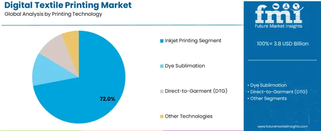 ● 数字纺织印花市场领先技术:喷墨印花(72%)