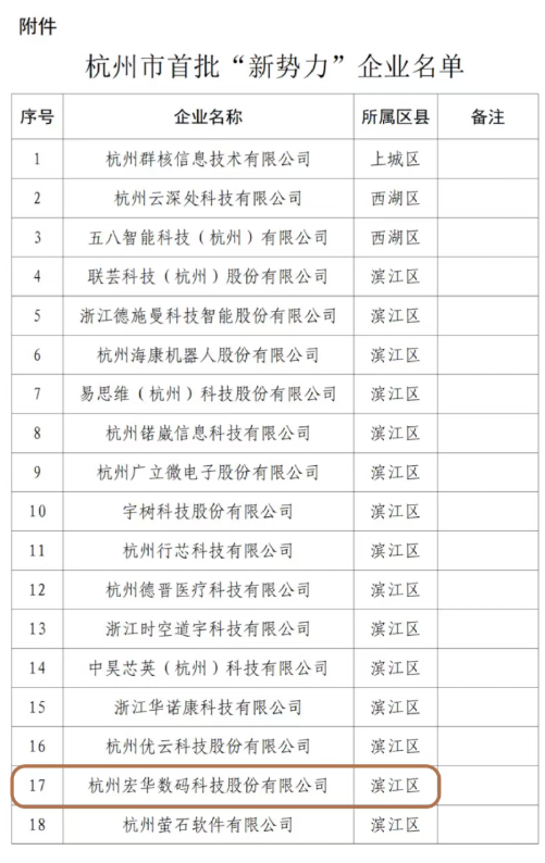 近日,根据《杭州市人民政府办公厅关于印发服务“新势力”企业若干举措的通知》(杭 政 办 函[2025]29号)及《杭州市“新势力”企业遴选方案暨认定奖励实施细则(试行)》精神,并按照相关办法要求,杭州市经信部门通过初审推荐、专家评审、联审联查等程序,正式遴选出首批“新势力”企业。宏华数码科技股份有限公司凭借其深厚的技术积淀、卓越的创新能力和高成长性的发展态势,成功入选该名单,跻身代表杭州未来产业发展方向的“核心梯队”。
