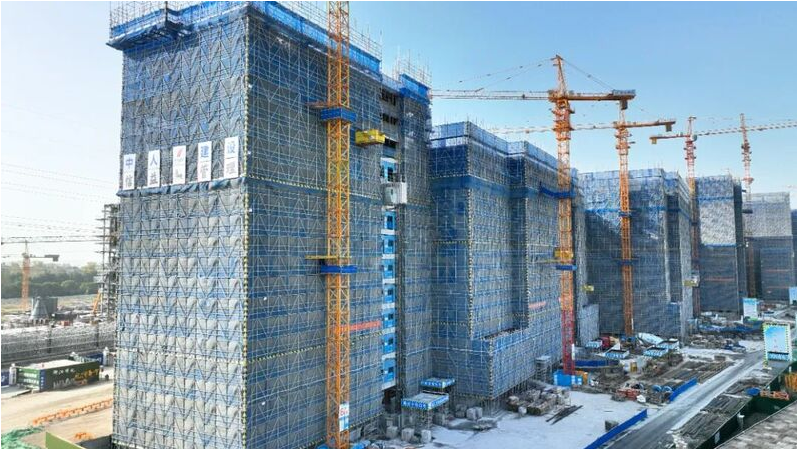谈及项目建设进度,施工现场负责人杨祖国介绍:“项目于今年2月启动打桩作业,6月正式进入土建施工阶段,目前整体推进有序高效,进度基本符合预期。”据了解,在施工团队的全力奋战下,项目建设捷报频传:辅助用房已提前完成结顶,1号车间实现一半结顶,2号车间主体施工进度达80%,3号车间达70%,综合楼主体工程进度也已超过80%,各项施工环节衔接顺畅。“按照当前的建设节奏,我们预计将在12月底前完成5栋建筑的全部结顶工作,为后续装修装饰、设备安装等工序争取充足时间。”杨祖国补充道。