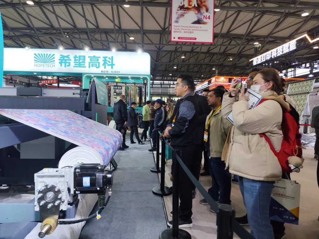 2025 年 12 月 16 日,承载全球纺织产业六年期待的上海国际纺织工业展览会(ShanghaiTex 2025)在上海新国际博览中心盛大启幕。本届展会以 “同行永续?织动未来” 为主题,汇聚 500 余家全球顶尖企业与逾 100 个国家的专业买家,在 50000 平方米展区内勾勒出绿色智能的产业新图景。其中,广东希望高科数字技术有限公司(简称 “希望高科”)在 N4B09 展位重磅首发HOPE FlexCore Singlepass 数码印花机,以 “模式 + 技术” 双突破重构行业认知,与 G1-PRO、H1-PRO 组成的全新设备矩阵,成为展会最受瞩目的焦点。