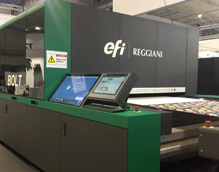EFI Reggiani推出的EconEXT PLUS打印机凭借在线聚合功能,实现了打印与固色的一步完成,大幅降低了设备占地面积、能源消耗与综合打印成本。据EFI代表Paolo Torricella介绍,该环保解决方案可兼容颜料、活性染料、酸性染料等多种耗材,更支持无需纸张的直接染料升华工艺。这种集成式方案的核心优势在于可靠性与一致性,能够实现“无论用户如何操作,都能获得相同的结果”,这对于企业跨工厂规模化扩张至关重要。事实上,EFI Reggiani的一体化设备家族已形成完整生态,其COLORS系列打印机可支持12色连续打印,通过扩展色域与色彩深度提升打印品质,同时借助工业4.0兼容设计,实现24小时不间断运行,单名操作员即可管理多台设备,显著提升生产效率。