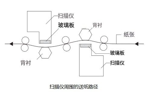 为了使扫描仪能够稳定地读取印刷品的颜色,必须保持纸张与扫描仪之间的距离恒定,以稳定纸张上LED照明的亮度。为此,IQ-501的传输路径经过特殊设计,在扫描仪的读取位置弯曲纸张,以防止纸张起皱,并通过引导纸张沿弯曲外侧移动,最大限度地减少被读取纸张与扫描仪之间距离的变化。此外,为了正确读取相对于纸张的打印位置,保持纸张传输速度恒定至关重要,以防止CCD传感器拍摄的图像缩小。因此,辊筒的速度沿进纸方向向下游方向逐渐增加,从而防止纸张在传输路径内沿进纸方向发生偏转,并确保纸张始终处于张力状态。得益于所有这些措施,两个扫描仪读取纸张的速度差异可以控制在0.1%以内。