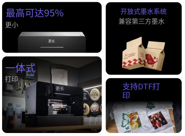 ePrint采用开放式墨水架构,支持各类第三方UV与DTF墨水,为用户提供了灵活的成本管理方案。追求极致色彩精度的用户可选择LONGER原装墨水;注重成本控制或有定制需求的用户,则可选用兼容墨水。此外,对低迁移墨水的支持,使其能够切入包装、食品相关等对墨水安全性要求更高的行业,进一步拓展了应用场景的广度。