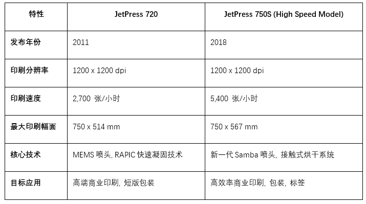 Table 1: JetPress 720与750S关键技术参数对比