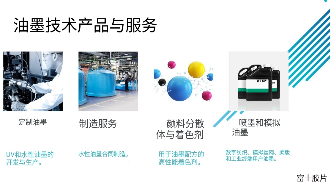 如今,以Fujifilm Sericol International为品牌,公司能够为不同应用场景提供定制化的油墨解决方案,包括用于包装印刷的水性、UV固化油墨,以及用于工业制造的功能性油墨。在数字制造喷墨墨水市场,Fujifilm Sericol International已成为主要参与者之一,与杜邦(Dupont)、惠普(HP)、爱普生(EPSON)等国际巨头同台竞技,这充分证明了其在高端油墨市场的强大竞争力。这种 “打印头+油墨”的垂直整合模式,确保了富士胶片的喷墨系统能够实现最佳的匹配性和稳定性,从而为客户提供更高质量的印刷效果和更可靠的解决方案。