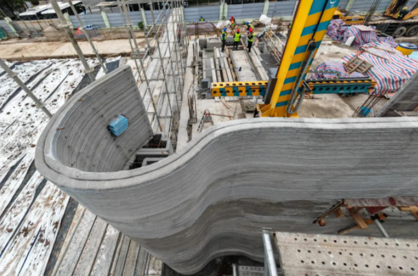 近日,由中建八局工程研究院、装饰公司联合东南大学张亚梅教授团队打造的3D打印生态城市运动公园——上海浦东民乐大居公共绿地项目完成主体打印工作。该技术实现了多类复杂异形构筑物的高精度成型与精益化施工,为城市微更新与社区品质提升提供了创新案例。