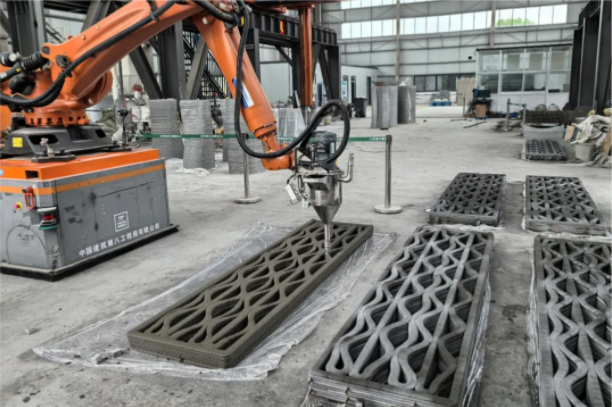 项目聚焦社区公共设施的特色化、人性化需求,采用“数字化设计+机器人3D打印”技术,构建了“多设备协同、多工艺集成”的智能建造模式。