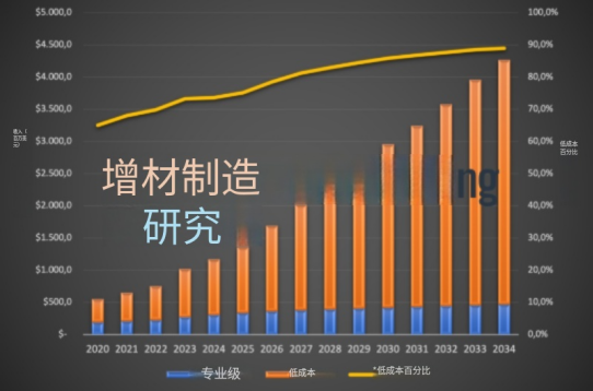 本报告的主要发现之一是,市场已发生重大转变,转向低成本聚合物挤出系统,而低成本设备和材料的出现则极大地推动了聚合物挤出3D打印的增长。正如AM Research所解释的,自2016年以来,这类低成本系统在商业领域的应用已超过了专业打印机。事实上,预计到2025年,低成本聚合物挤出市场的规模将几乎是专业聚合物挤出3D打印市场的三倍。