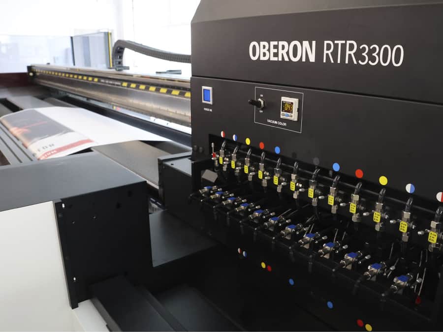 在视觉输出品质上,Oberon RTR3300展现出高端设备的卓越实力,可呈现惊艳、鲜艳的打印效果,精准匹配高价值商业用途的严格标准。设备提供两种灵活配置选择——四色加白色或六色配置,让印刷专业人士能够根据不同需求,在多种柔性基材上制作醒目、高冲击力的图形。无论是横幅、背光膜等常见喷绘材质,还是网布等特殊柔性基材,Oberon RTR3300都能实现始终如一的顶级打印品质,色彩还原度高、细节呈现清晰,可广泛应用于广告喷绘、标识标牌、场景装饰等多个细分领域,助力企业打造差异化竞争优势,赢得更多高价值订单。