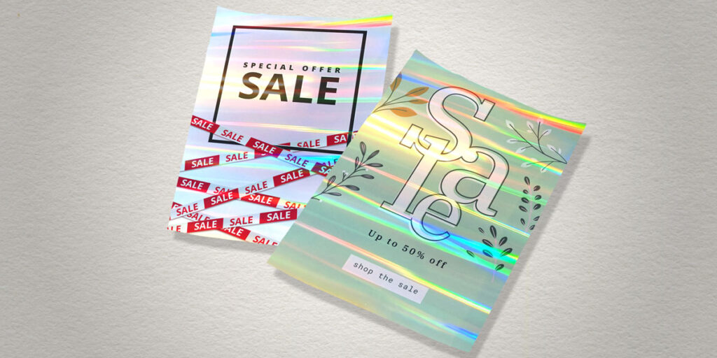 这款产品是一种特殊的介质,其银色底面经过特殊处理,呈现出弧形彩虹色反光效果。虽然它是静态印刷材料,但根据光照和视角的不同,会呈现出类似极光的柔和光泽,从而营造出深度和立体感。这使得在海报和视觉装饰中充分利用光影效果成为可能。