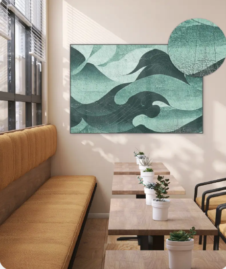 该技术可广泛应用于现代办公空间设计,既能生产高效吸音板、耐用墙面及地面装饰材料,也能制作高品质室内外标识与创意窗贴,帮助企业在降低环境影响的同时,提升空间颜值与品牌形象,让办公空间兼具视觉美感与绿色伦理。