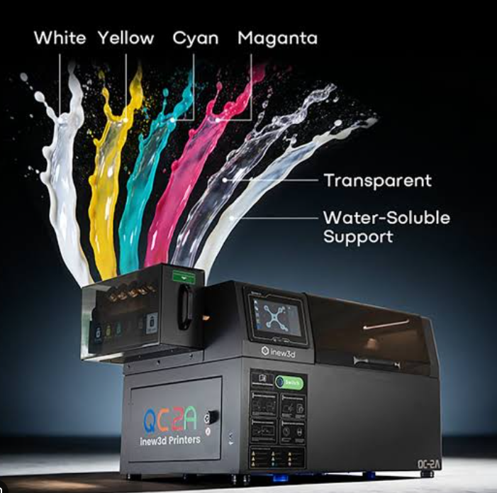 传统桌面级 3D 打印机多采用 FDM(熔融沉积建模)技术,受限于单色或有限多色打印,且色彩过渡生硬,难以实现细腻的色彩表现。inew3D QC2A 则采用了创新的CMYW 微喷 + UV 光固化叠层技术,彻底改变了这一现状。