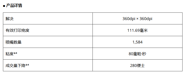 • 大规模喷嘴阵列:集成1584 个精密喷嘴(超过 1500 个),有效打印宽度达111.69 毫米,单滴墨量可达280 皮升(pL),在保证高粘度处理能力的同时,实现了业界领先的覆盖效率与产能。