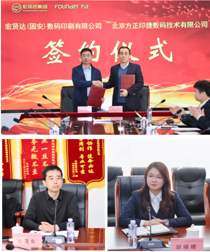 4月10日,方正印捷与北京宏贤达物流集团有限公司旗下宏贤达(固安)数码印刷有限公司在河北固安举办印刷设备采购签约仪式。双方正式签署协议,宏贤达集团引进2台方正桀鹰P8800HD高清黑白喷墨轮转印刷机,共同推动图书按需印刷(POD)与出版供应链深度协同发展。