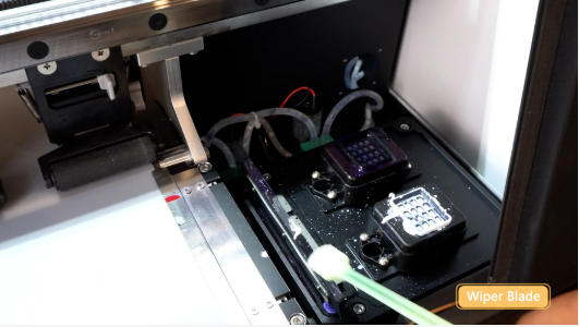 打印平台是放置承印物的地方,容易残留墨水和灰尘,会直接影响打印定位和图案贴合度。小心取下打印平台,用蘸有少量异丙醇的无绒布,轻轻擦拭平台表面,直到没有墨水残留和污渍,擦拭完成后晾干,再装回打印机,避免残留液体影响打印。